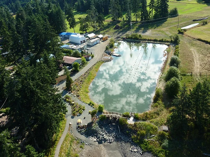A drone shot of Manatee Holdings’ Gartley Point Hatchery.