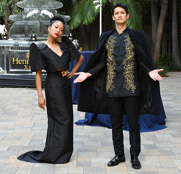Martee Dares to Dance authors, Shelby Rabara and Harry Shum Jr., wearing Filipiniana attire at an Asian American and Pacific Islander Heritage Month celebration. (Photo courtesy of Shelby Rabara)