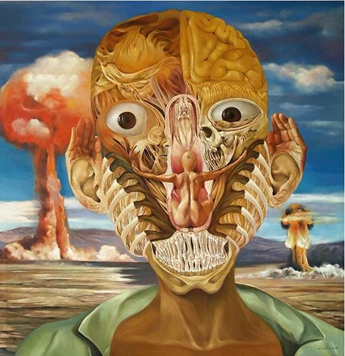This new phase marked a radical departure. Her pieces were often described by critics as "morbid, out-of-this-world, grotesque, and phantasmagoric." Dela Rosa's canvases became saturated with anatomical figures, proto-human skulls, cryptic machinery, and complex layers of imagery addressing mortality, technology, and spiritual identity. This became her laboratory for the soul, where she stated, “I didn’t want to just paint what the eye sees; I wanted to paint what the soul experiences.”